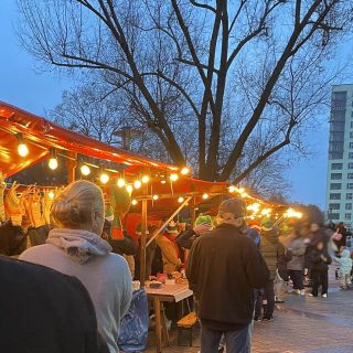 Am 9. Dezember 2025 wurde es so richtig weihnachtlich, denn der Weihnachtsmann hatte sich angesagt. An den hübsch beleuchteten Buden konnte man sich mit Weihnachtspräsenten eindecken oder selbst etwas zum Verschenken basteln. Und natürlich wurden alle Besucher:innen kulinarisch gut versorgt.