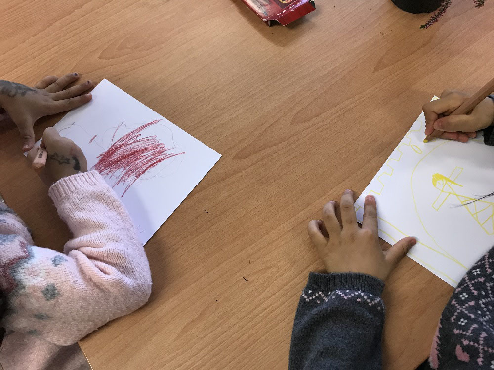 Besonders die Kinder waren bei der Entstehung der Bilder mit großer Begeisterung dabei. Groß war die Freude, als sie sich zur Präsentation auf einem Plakat wiederfanden, welches den Verlauf des Projektes dokumentierte. Sie griffen auch gleich wieder zu Stift und Papier und malten munter drauflos.