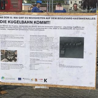 Wer sich vielleicht wundert, was das merkwürdige Gestänge bedeutet, das am Mittelpunkt auf dem Boulevard an einem Bauzaun aufgebaut ist, sollte bis 4. Juli donnerstags von 13 bis 17 Uhr immer mal wieder vorbeischauen.