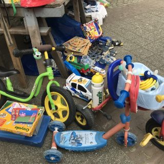 Vorsichtshalber war für den 13. April eine Schlecht-Wetter-Alternative organisiert worden, aber die Sonne hatte ein Herz für die Trödler und schaute öfters mal durch die Wolken. So fand der diesjährige erste Trödelmarkt doch noch im Freien statt.