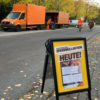 Es war noch ziemlich kühl am Morgen als am 18. Oktober 2024 in der Maxie-Wander-Straße die großen orangen Fahrzeuge der BSR für den ersten Sperrmüll-Aktionstag im Kiez in Stellung gingen. Auf der anderen Straßenseite wurden Infostände aufgebaut von der Wohnungsgesellschaft Deutsche Wohnen und vom Quartiersmanagement Boulevard Kastanienallee, das die fleißig Helfenden mit heißem Kaffee und Snacks versorgte. Gleich nebenan füllten sich die Tische des Tausch- und Verschenkemarktes.