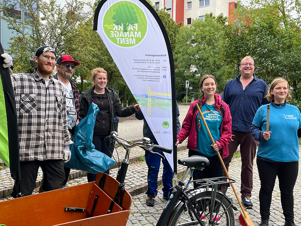 Aufräumwetter war es nicht gerade, aber immerhin haben sich zehn Aufräumwillige auf dem Boulevard Kastanienallee eingefunden, um am internationalen „World Cleanup Day“ dem Unrat zu Leibe zu rücken. Es kamen sieben volle Müllsäcke zusammen. Zum Abschluss gab es für alle leckeren Kuchen, spendiert vom Quartiersmanagement Boulevard Kastanienallee.