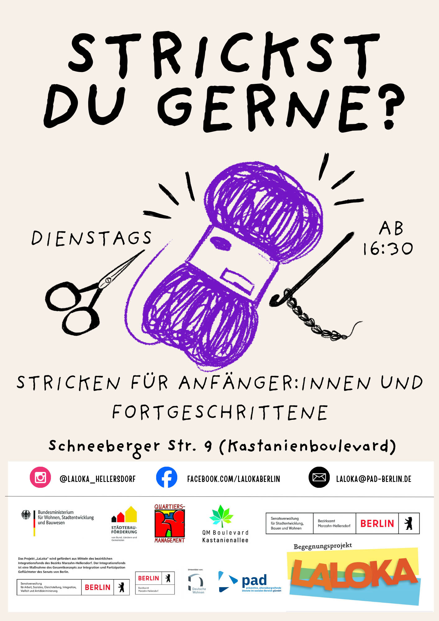 Ob Anfänger:innen oder Fortgeschrittene, im „LaLoka“ klappern immer dienstags von 16.30 bis 18.30 Uhr in gemütlicher Runde die Stricknadeln. Angefangene Arbeiten können mitgebracht werden.
