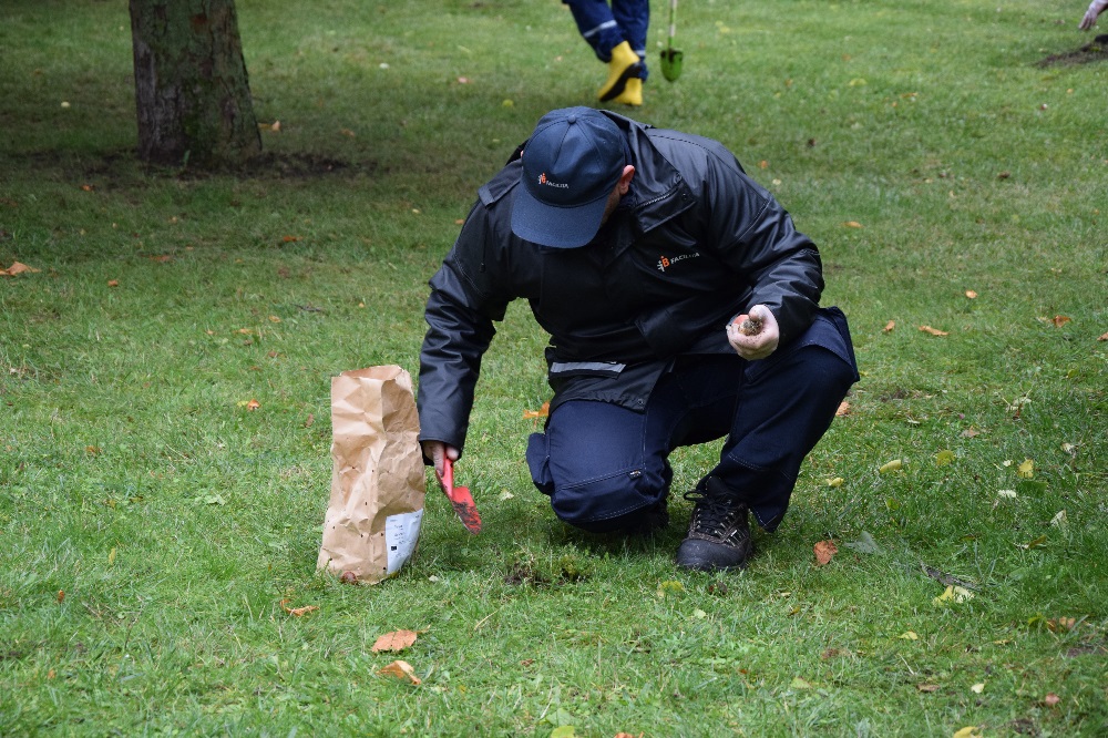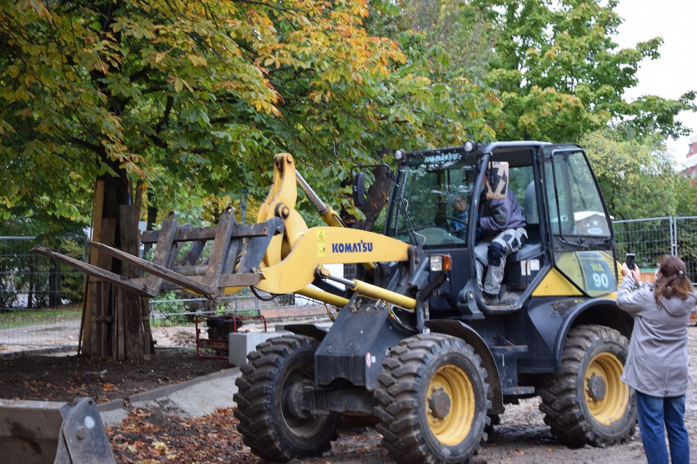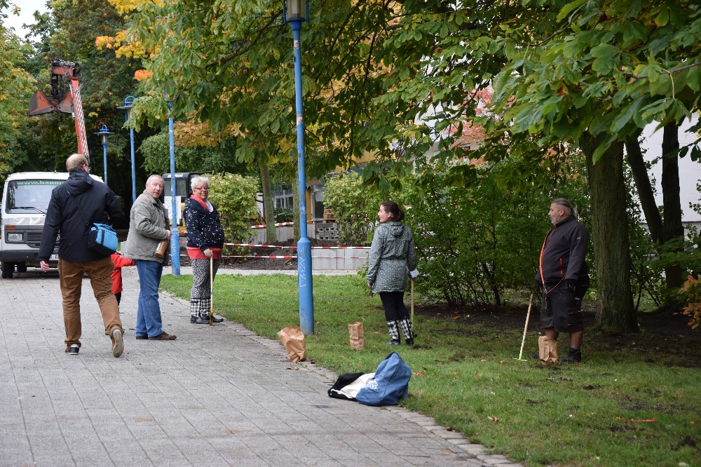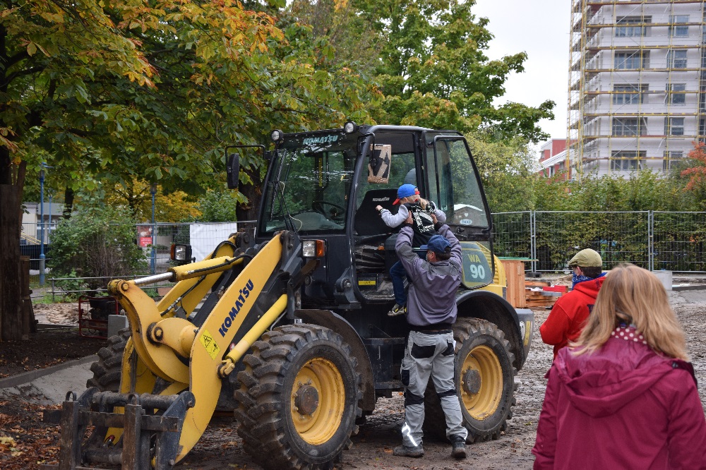 Das Herbstwetter ist ja gerade nicht sehr einladend, aber am 15. Oktober hatte Petrus mal kurz Wind und Regen abgeschaltet. Eine gute Gelegenheit, 6.000 Frühblüher zu pflanzen, das Fledermausbeet am Rondell zu gestalten und sich die Baustelle am Boulevard Kastanienallee anzusehen.Das haben Kita- und Schulkinder auch gemacht; eine Familie ist dafür sogar extra aus Mahlsdorf gekommen. Einmal in einem großen Bagger sitzen! Für die Steppkes ging dieser Traum in Erfüllung. Sie durften einige Hebel ziehen und sogar hupen, fleißig fotografiert von Eltern und Erzieher*innen. Die Mitarbeiter*innen der Firmen Best Galabau und merry go round hatten alle Hände voll zu tun und mussten viele Fragen beantworten.