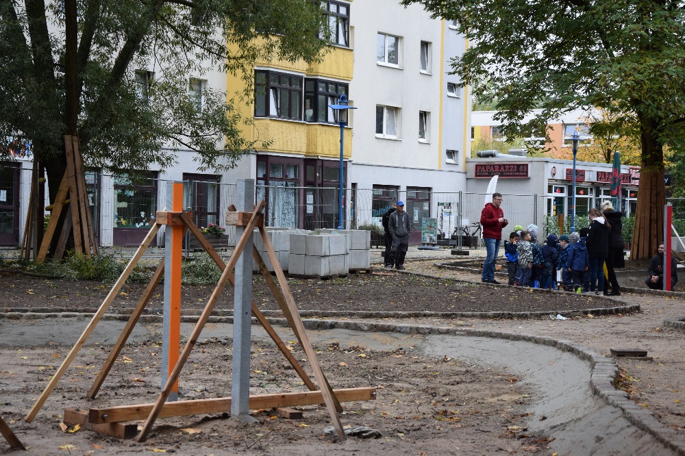Die Besichtigung der Baustelle von dem neu entstehenden Spielplatz-Areal wurde im Rahmen der Umgestaltung des Boulevard Kastanienallee durch den Träger bwgt e.V. sowie den Firmen Best Galabau und Merry go round ermöglicht.