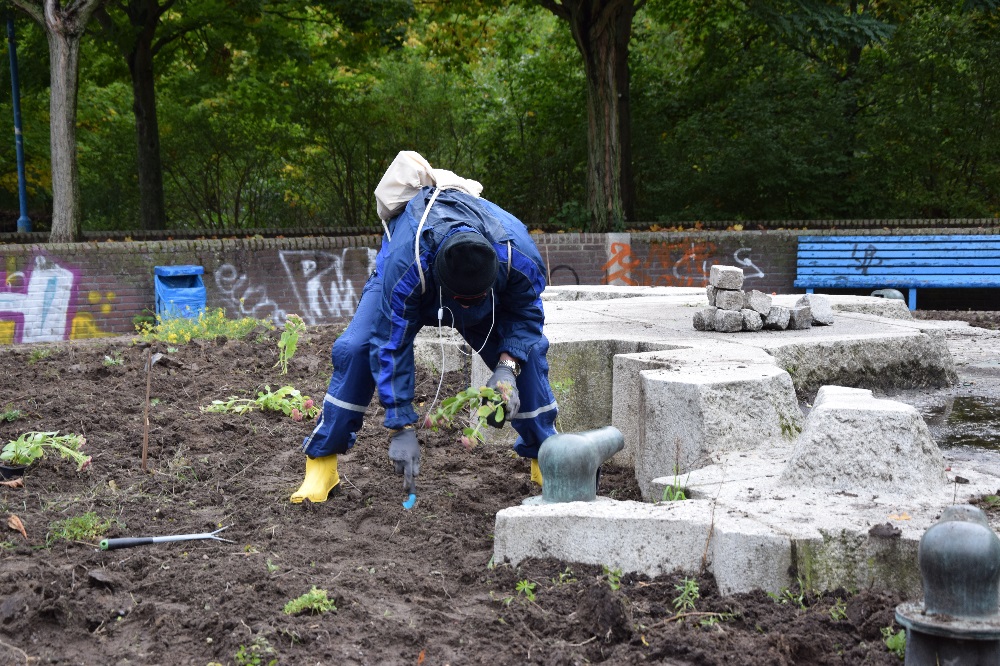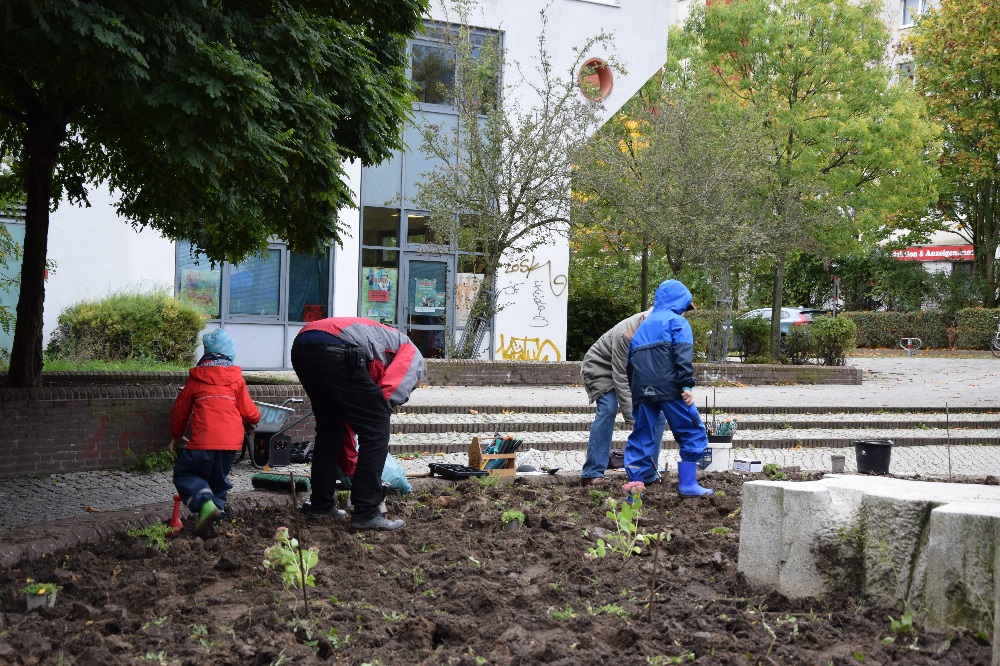 Blumen pflanzen und Baggerfahren am Boulevard Kastanienallee
