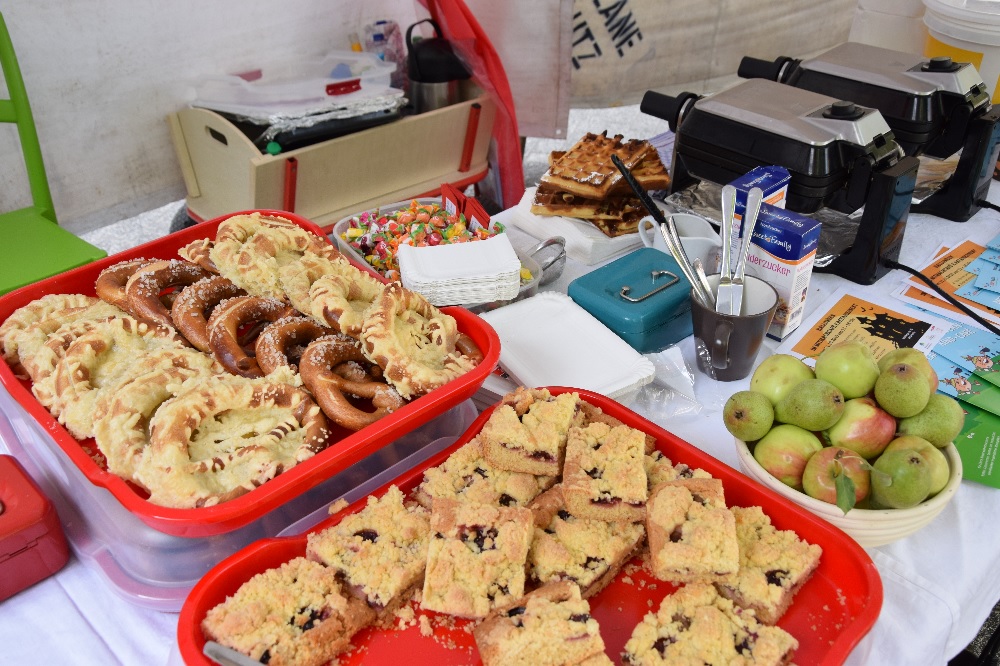 Natürlich war auch für Essen und Trinken gesorgt. Der Jugendklub „Kraftwerk“ produzierte fleißig Popcorn, vom Deutsch-Polnischen Hilfswerk gabs wieder süße und herzhafte Spieße und Wurst vom Grill. Beim „KastanienNest“ und dem Haus “AUFWIND“ dampften die Waffeleisen um die Wette.
