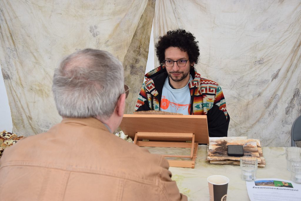 An einem Stand stellte sich das neue Projekt „Zusammenkommen – Kunst und Teilhabe im Quartier“ (gefördert mit Mitteln aus dem Programm Sozialer Zusammenhalt) vor, das durch die nGBK durchgeführt wird. Es gab Kaffee und Kuchen und man konnte sich porträtieren lassen. Quartiersratssprecher Siegfried Nord fasste sich ein Herz und setzte sich als erster hin. Diese Gelegenheit wird es in diesem Jahr noch öfter geben. Der Künstler Juan C. Alfonso bietet Porträtzeichnungen an – dafür erweist man jemanden aus der Nachbarschaft einen Freundschaftsdienst: mit dem Hund Gassi gehen, einkaufen oder die Fenster putzen. Zwischen Mai und September ist er am Boulevard im „LaLoka“, bei „Matilde“, in der Gemeinschaftsunterkunft Maxie-Wander-Straße, in der Bar „Hühnerstall“ und bei der Fleischerei Neuenhagener zu Gast. Wer sich in eine Liste eintrug, erhielt die genauen Termine.