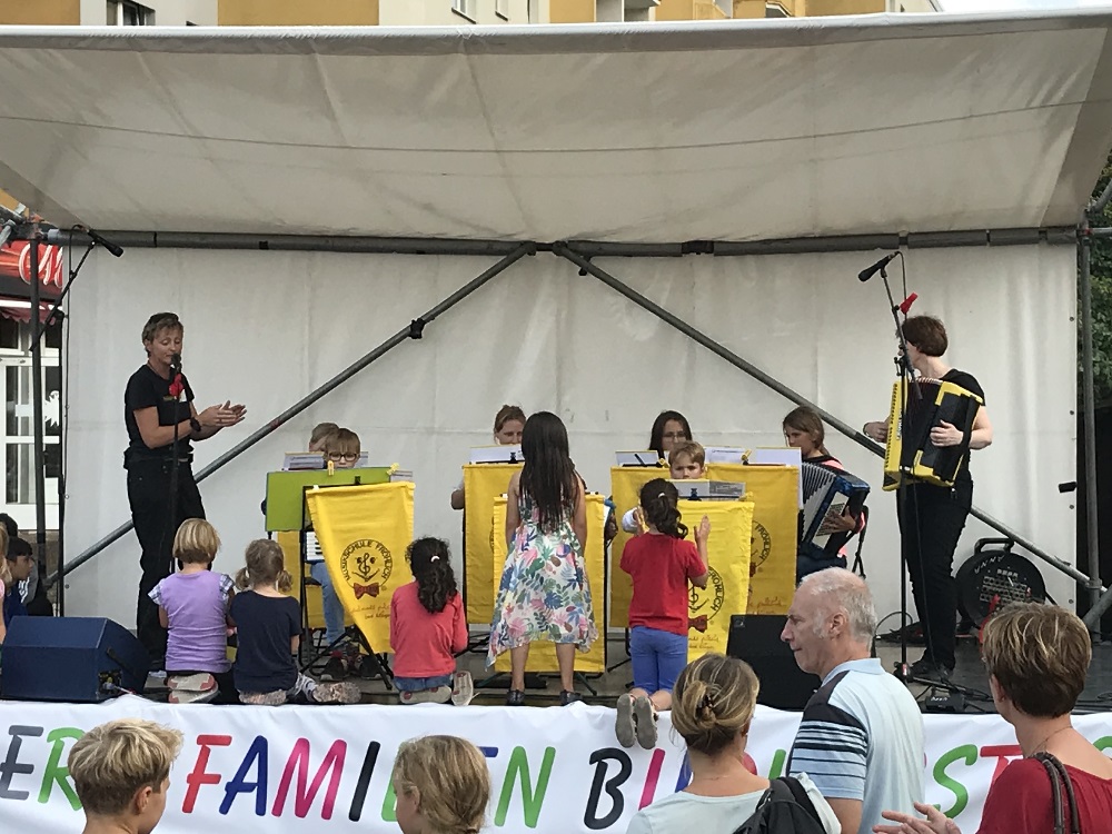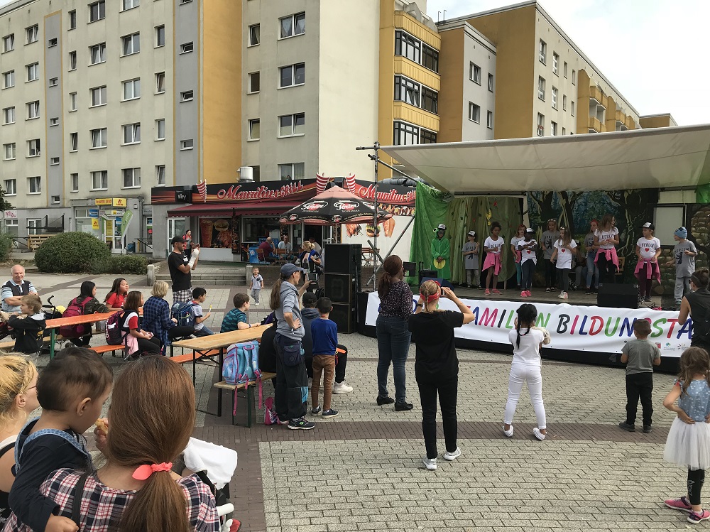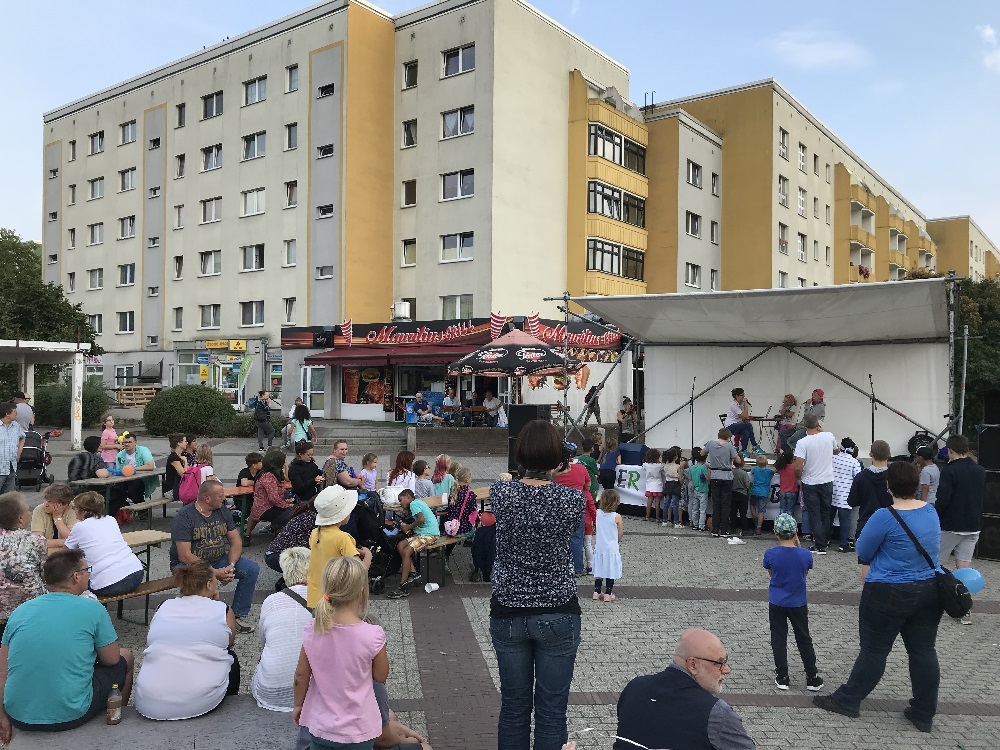 Auf der Bühne gab es ein buntes Programm. Die „Schleipfuhl-Talents“ rockten den Platz, beim Märchenstück des Stadttheater „Varia Vineta“ drängten sich die Kinder vor der Bühne und die Musikschule Fröhlich animierte alle zum Mitklatschen. Ernste Themen locker verpackt zeigte die Theatergruppe aus dem Haus „Aufwind“ und zum Abschluss wurde es noch einmal international bei den Klängen von „Chochán Volador“.