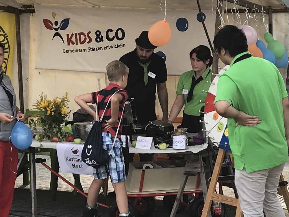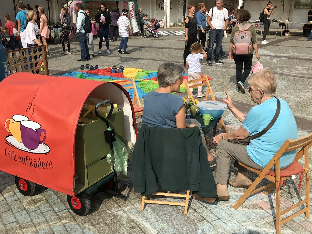 Natürlich war auch für das leibliche Wohl gesorgt. Der Veranstalter und Projektträger, das Deutsch-Polnische Hilfswerk e. V., brutzelte Wurst im Akkord und beim „KastanienNest“ glühten die Waffeleisen. Und natürlich war auch Barbara Jungnickel mit ihrem „Café auf Rädern“ dabei.