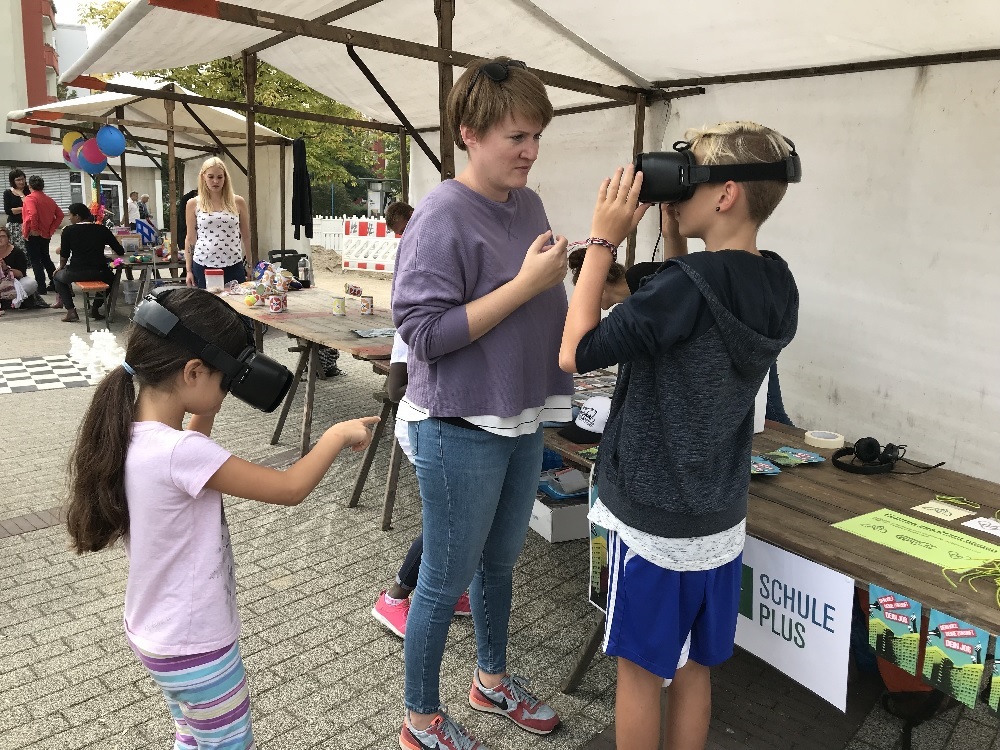 Am Stand von „SchulePLUS“ konnten die Besucher_innen in virtuelle Welten eintauchen, das Jugendnetz Berlin informierte über Möglichkeiten der Medienpädagogik und bei „Librileo“ wurden Kinder und Eltern zum Schmökern in Büchern verführt.
