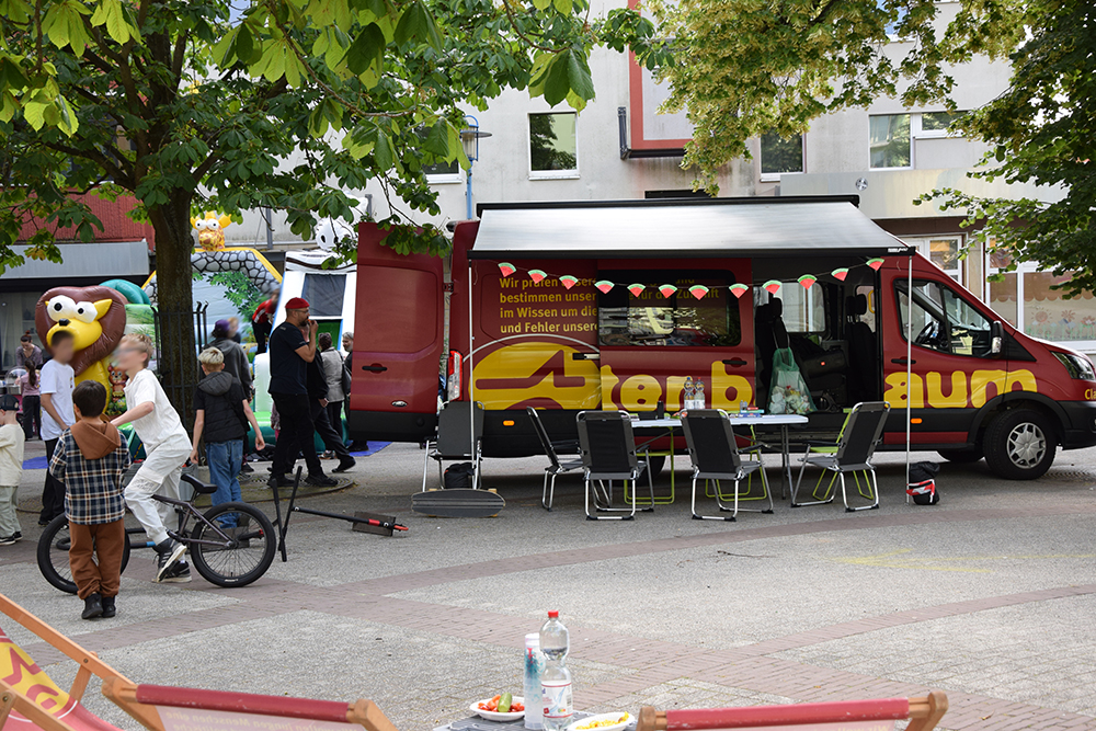 - Beim Spielmobil vom Roten Baum gab es Bewegungsspiele zum Ausleihen und Infos zur Kinder- und Jugendarbeit im Bezirk.