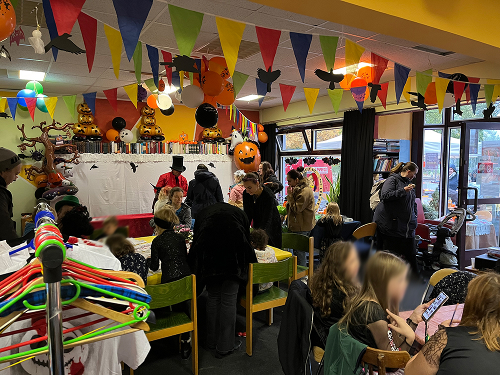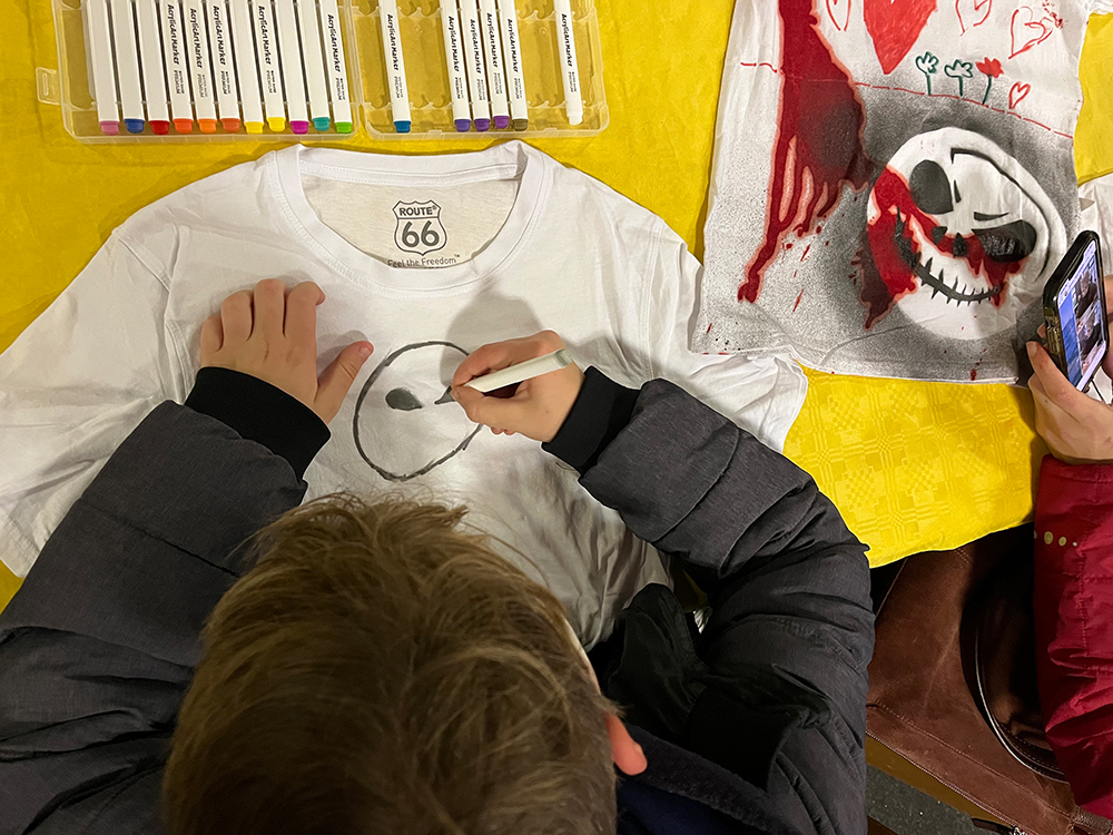 Schaurig war es zu Halloween auf dem Boulevard Kastanienallee und nicht nur, weil Petrus ein paar Regenwolken vorbeischickte. Zum Glück hatte das Laienpuppentheater seine Türen geöffnet. Überall wuselten Hexen, Vampire, Zauberer, Drachen und schwarze Königinnen herum, nahmen die Hüpfburg in Beschlag und bemalten T-Shirts mit ziemlich gruseligen Motiven.