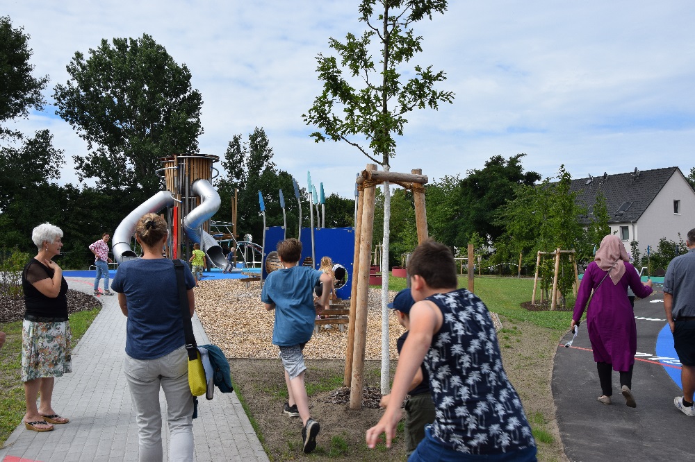 - Die Kinder stürmten sofort den neuen Spielplatz.