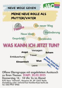 Gesprächsthemen sind u .a.: was das Kind jetzt braucht, wie der Umgang gestaltet werden kann, wie man mit dem Jugendamt kommuniziert und man trotzdem gute Eltern sein kann. Die Gruppe trifft sich jeden 2. und 4. Donnerstag im Monat, von 16-18 Uhr. Der nächste Termine ist am 11. Dezember 2025.