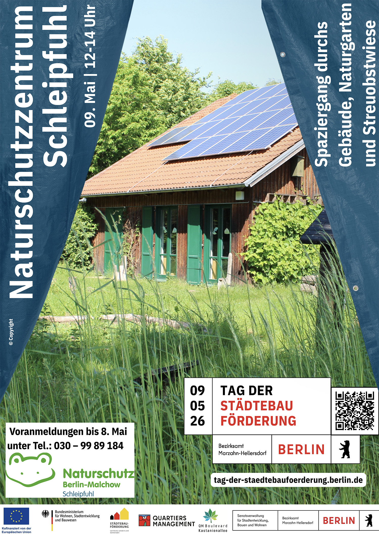 Zum „Tag der Städtebauförderung“ am 9. Mai 2026 können sich die Besucher:innen über vier Veranstaltungen im Bezirk Marzahn-Hellersdorf freuen. Zu den Angeboten gehört auch ein Rundgang durch das Naturschutzzentrum Schleipfuhl. Die Angebote verteilen sich über verschiedene Quartiere und bieten Einblicke in ökologische Bauprojekte sowie soziale Vernetzung.